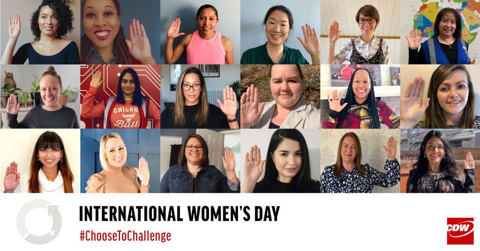 CDW coworkers across the globe celebrating 2021’s #ChooseToChallenge IWD theme