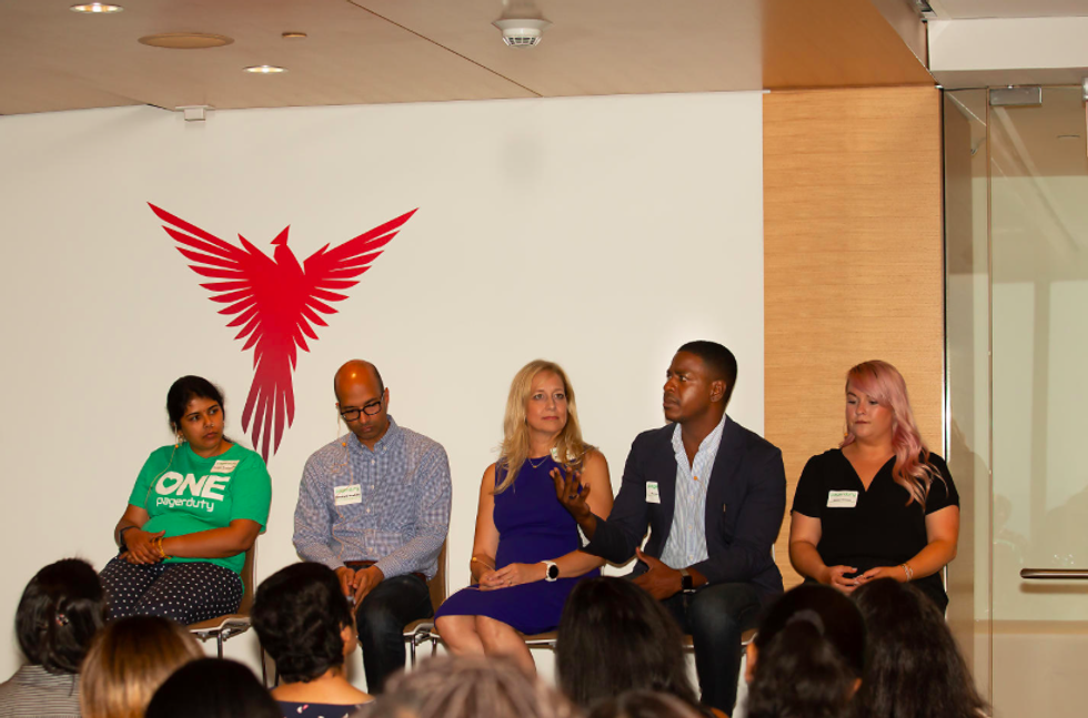 The centerpiece of the evening was an in-depth panel discussion featuring several of PagerDuty's women tech leaders and male allies followed by a great audience Q&A. The PagerDuty panelists included: