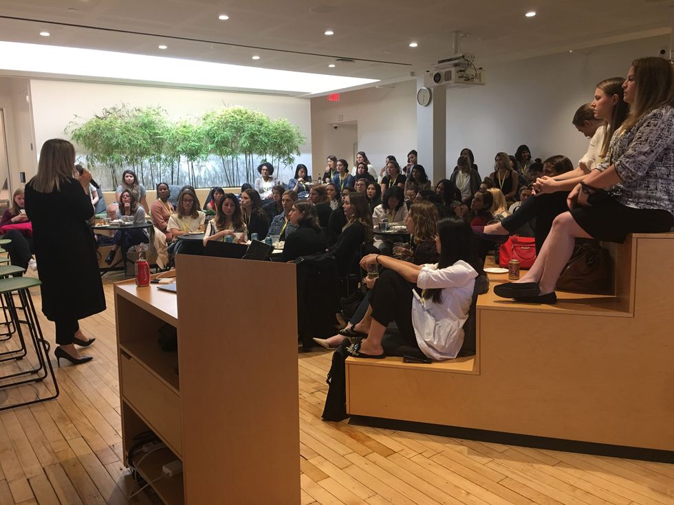 This completely sold-out event kicked off with a chance for guests to enjoy some refreshments as they networked with both the Slack team and their peers. PowerToFly CoFounder Katharine Zaleski kicked off the night and introduced Marina Milenkovic, Senior Solutions Engineer at Slack who delivered the official welcome and introduction. She discussed phrases like "hug the elephant in the room" and "tilt your umbrella" to describe Slack's culture, a culture that is full of respect and empathy and an environment that is open to address and tackle problems with the intent to find solutions and better each other. She also noted that she joined Slack because she LOVES the product, but ultimately stays at Slack because of the people.