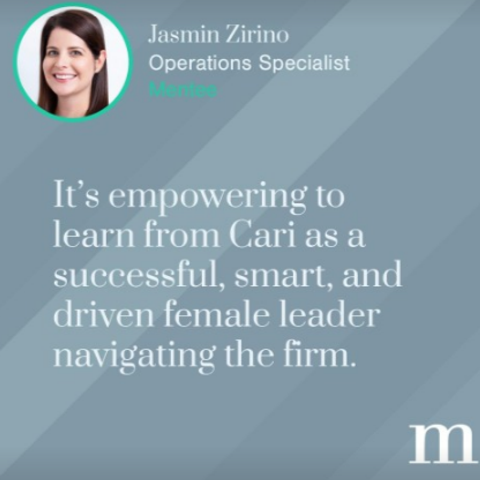 “Meet a pairing in Millennium’s Mentorship Program: Cari Smalley, Co-Head HR Business Partners, Americas, and Jasmin Zirino, Operations Specialist. They say, "The mentorship program is a fantastic experience for anyone who wishes to join. It allows you to meet someone you do not directly work with and grow your network. It is invaluable to have the ability to work through solutions to problems, use one another as sounding boards, and occasionally just blow off steam in a supportive space."”