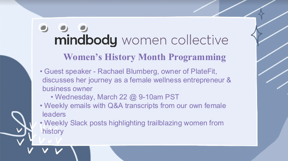 The companies below celebrate the women on their teams 365 days of the year, but they were kind enough to share some of the special programming they have in place to commemorate International Women's Day and Women's History Month during the month of March.