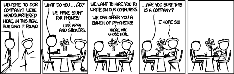 I'd love to see more tech companies switch away from the traditional whiteboard interview. The whiteboard has had its time in the sun, and the technical interview is long overdue for a bit of disruption (sorry, I couldn't resist — I've been talking to way too many startups.)