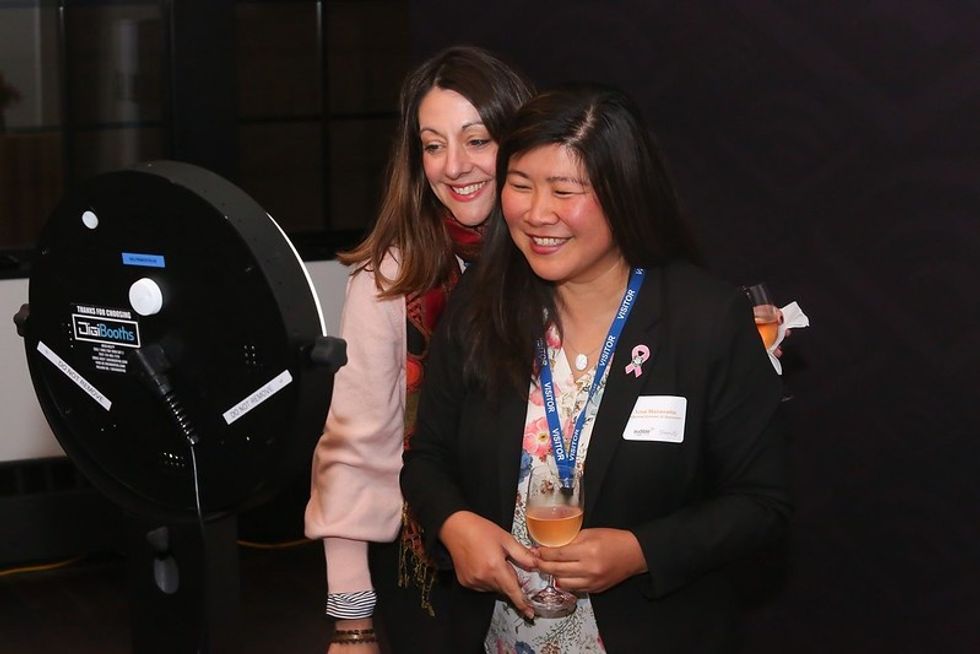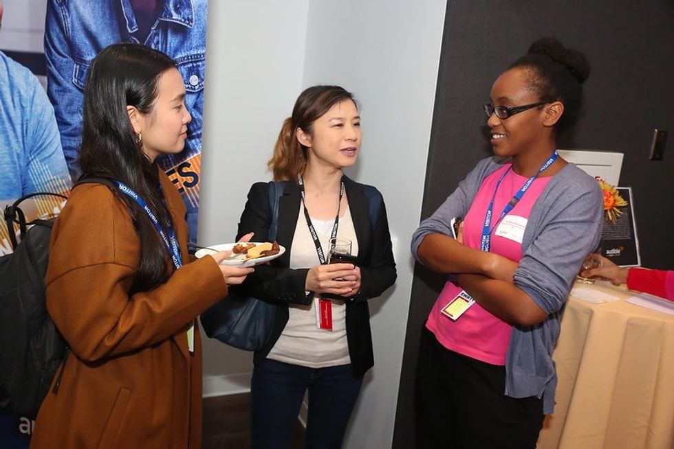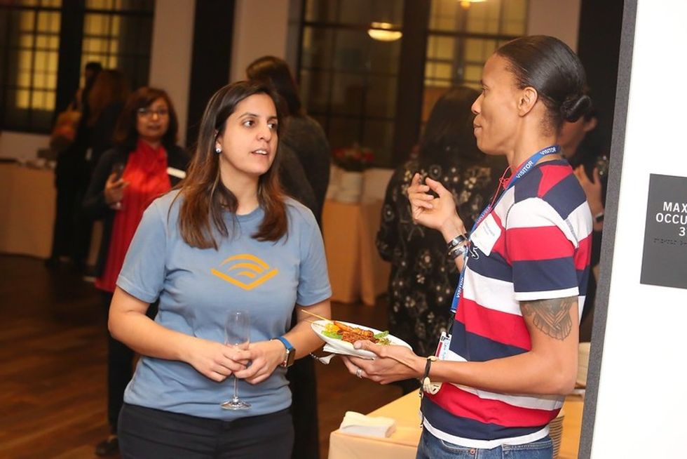 Vincenza returned to wrap up our programming, but the night was not over yet! Guests were encouraged to stick around and network while enjoying wonderful refreshments and our complimentary photo booth. As the evening came to a close, Audible and PowerToFly supplied shuttle buses and Lyft codes to help our attendees find a safe way home.