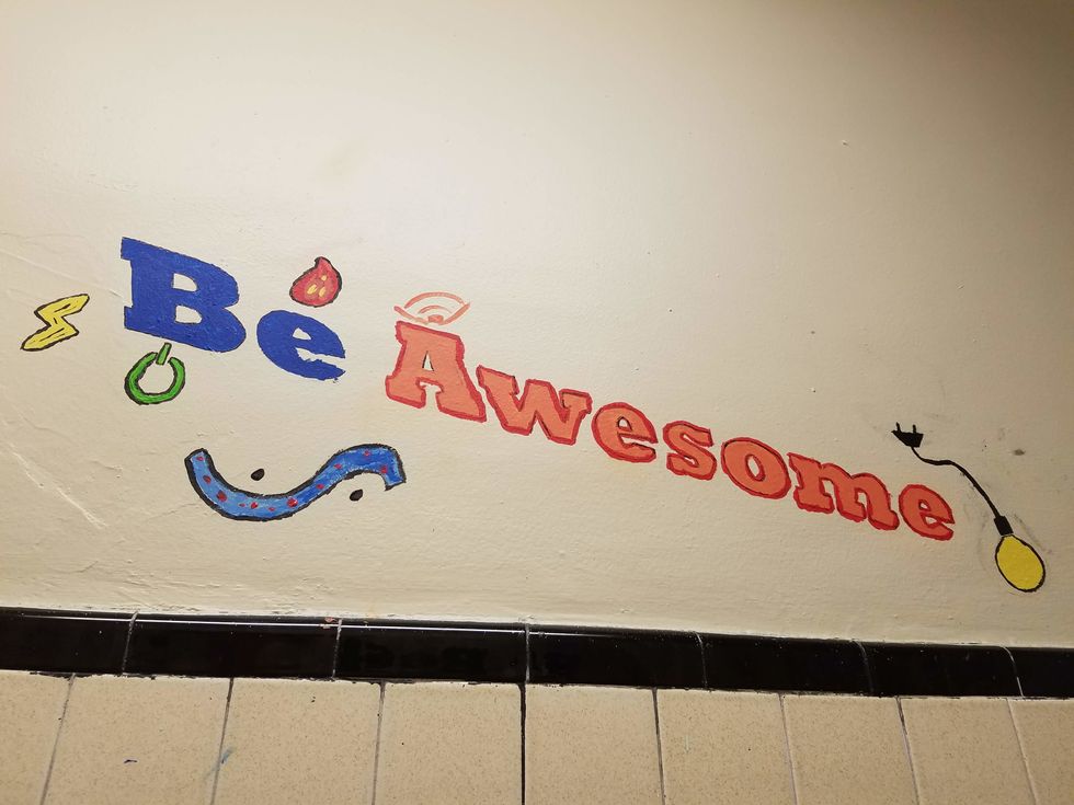 We split into two teams, one to work on painting murals in the bathrooms, and one to work on planting flower beds. I chose painting because I enjoy painting my home, though I lack some of the skills needed to make a mural. I was pleasantly surprised to see that we were creating small paintings instead of larger ones that I usually think of when I see a mural.